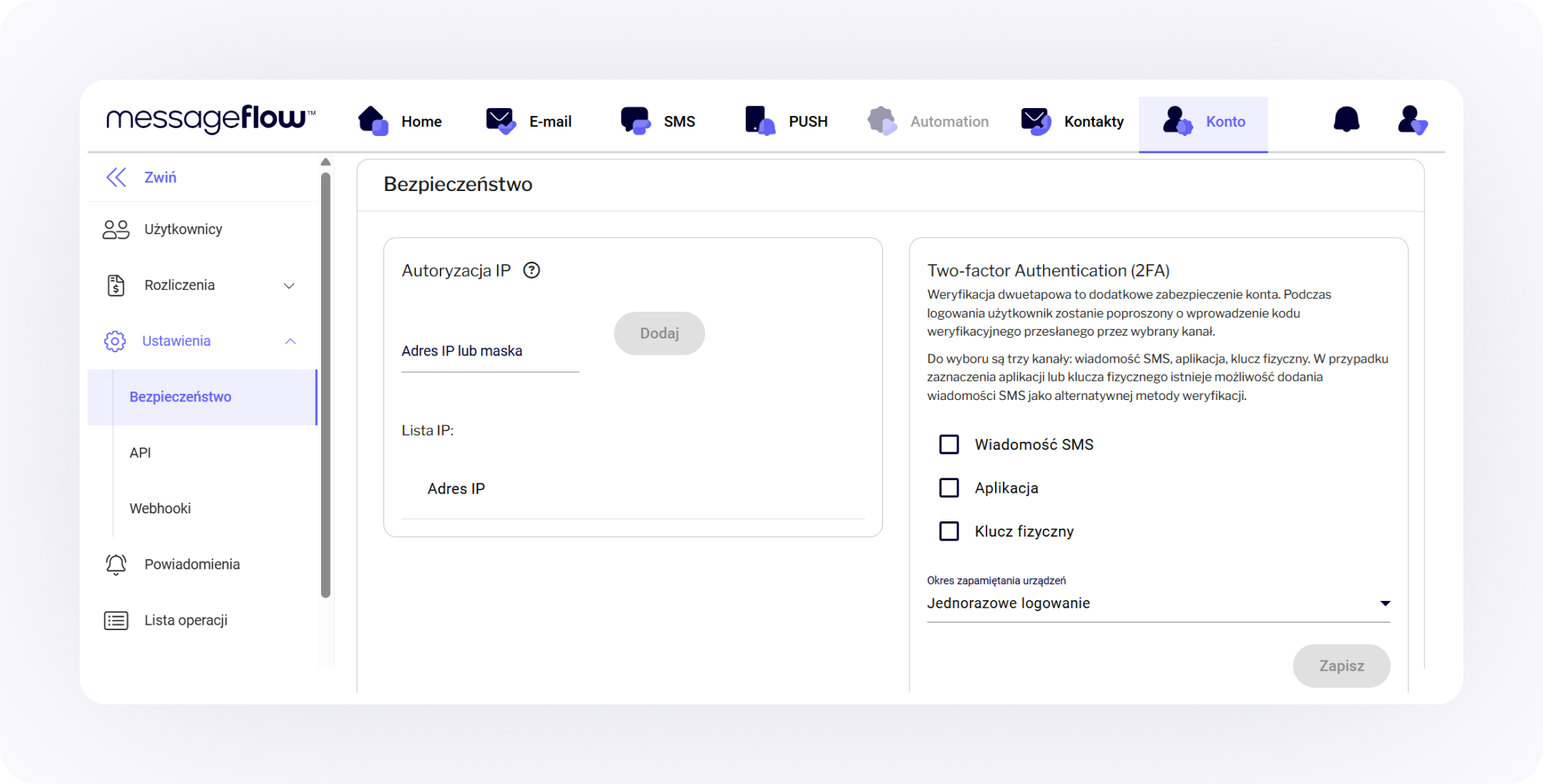 Uwierzytelnianie dwuskładnikowe nabiera szczególnego znaczenia, gdy Twoja platforma stanowi fundament cyfrowej komunikacji jak ma to miejsce w przypadku CPaaS (Communications Platform as a Service). W takim środowisku przejęcie jednego konta może dać nieuprawnionym osobom dostęp do wrażliwych danych dotyczących wiadomości, scenariuszy kampanii, a nawet całych list kontaktowych klientów.